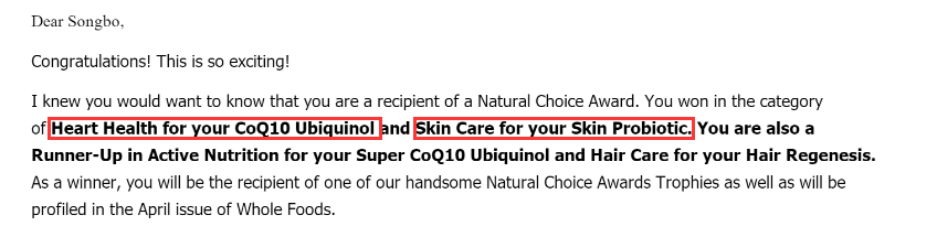 We extend our heartfelt gratitude to "Natural Products Expo West" and "WholeFoods" for their endorsement and support of our brand, NatureSpan. Such acknowledgement serves as the propelling force driving us to excel and ascend to the pinnacle of the health industry. Concurrently, we express our sincere appreciation to each member of our team. Your diligence and intellect have been instrumental in forging the success of NatureSpan . United, let's persist in elevating NatureSpan to a vanguard position in the industry, thereby contributing to the enhancement of global health and beauty.